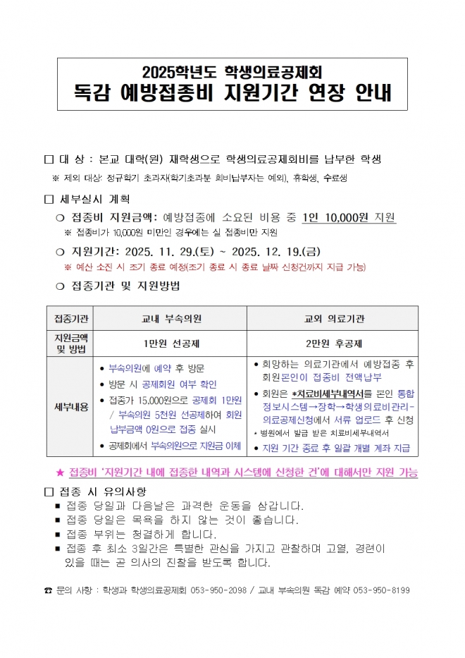 2025학년도 학생의료공제회 독감 예방접종비 지원 안내