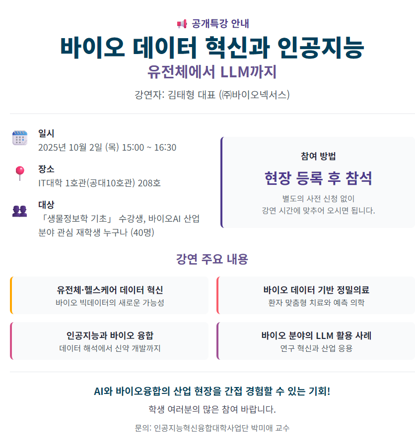 (공개특강)바이오 데이터 혁신과 인공지능: 유전체에서 LLM까지