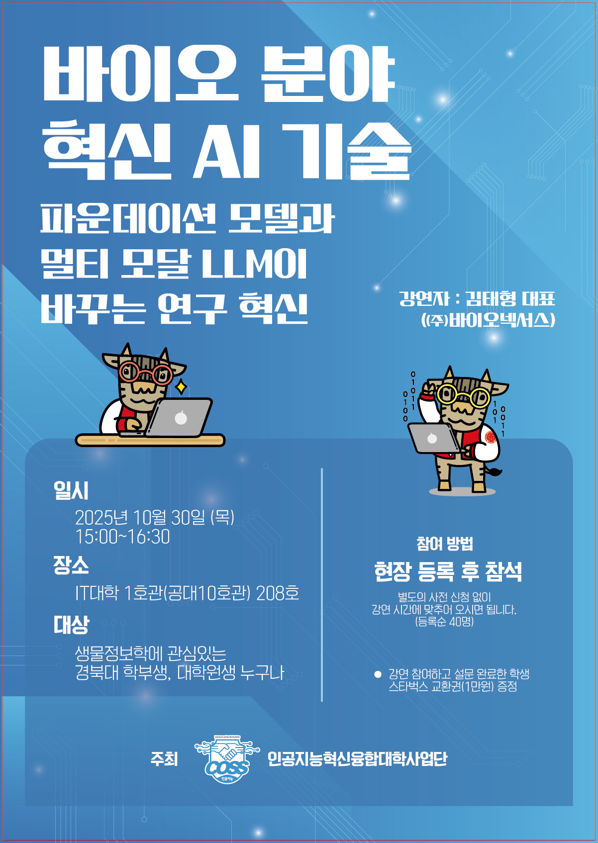 (공개특강) 바이오분야 혁신AI 기술 [인공지능혁신융합대학사업단]