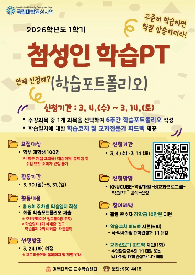 2026학년도 1학기 첨성인 학습PT 모집 안내