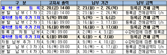 2026학년도 1학기 재학생 등록금 수납 계획 안내